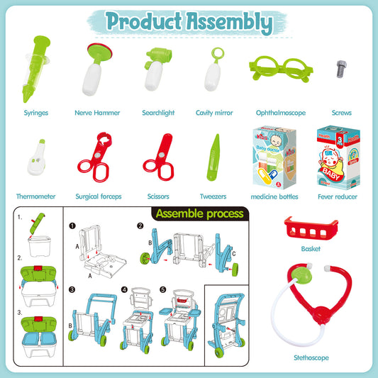 3-in-1 Kids Medical Cart, Doctor Kit for Toddlers Ages 2 3 4 5 6 Years, Pretend Play Dentist Play Kit for Toddlers Boy Girl, Birthday Christmas Gift