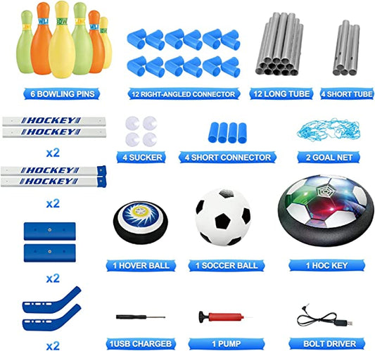 3-in-1 Hover Soccer Ball Hockey Bowling Set with LED Light,Indoor and Outdoor Toys for Kids Ages 3-12