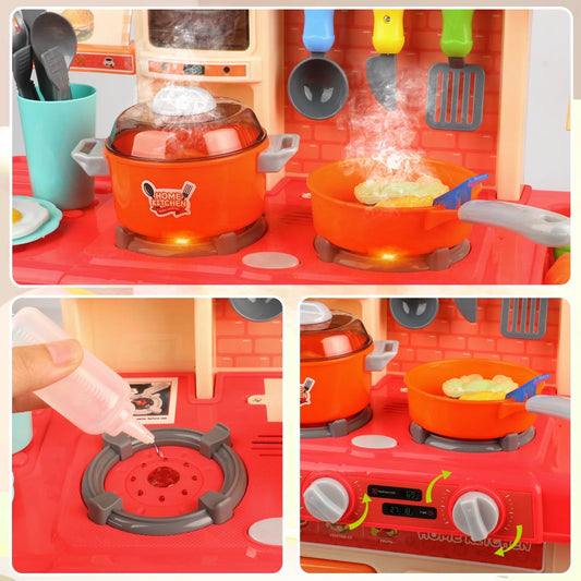 42PCS Play Kitchen Set for Kids Girls 3 4 5 6 Years, with Realistic Lights and Sounds, Simulation of Spray, Toy Kitchen Set for Toddlers Birthday Christmas Gifts for Girls.